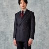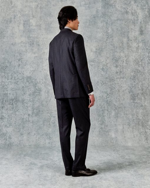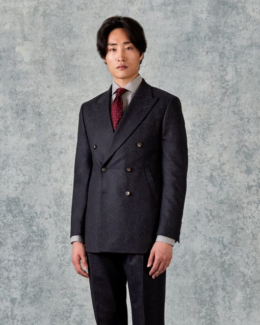 The Bowles Double Breasted Suit Jacket in Grey Flannel is tailored from fine Italian 100% wool, offering a soft drape and refined structure. With peak lapels, slanted welt pockets, and a soft shoulder, it blends classic tailoring with relaxed elegance.
