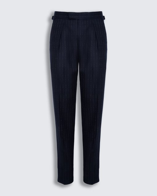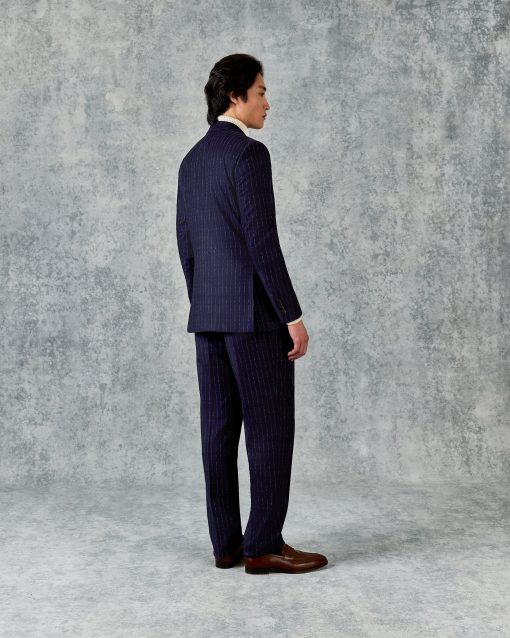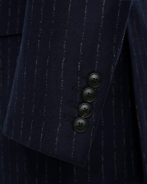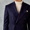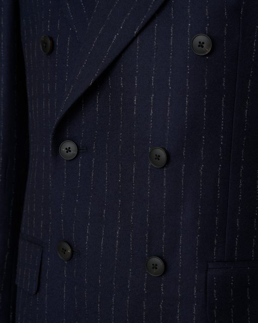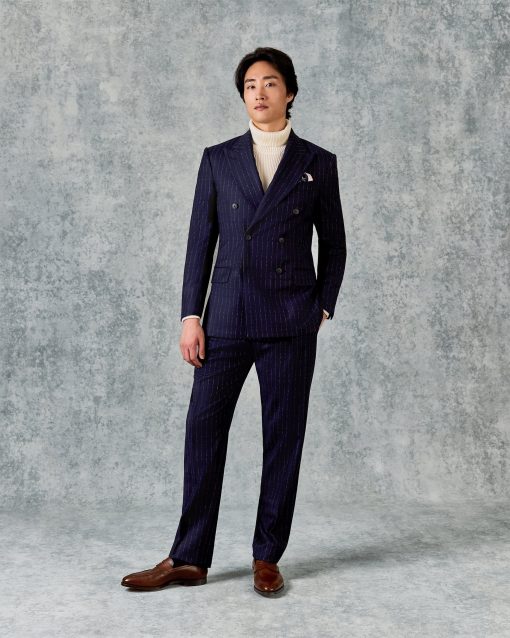 Gieves and Hawkes Men’s Churchill Double Breasted Suit Navy Morse Code Flannel