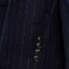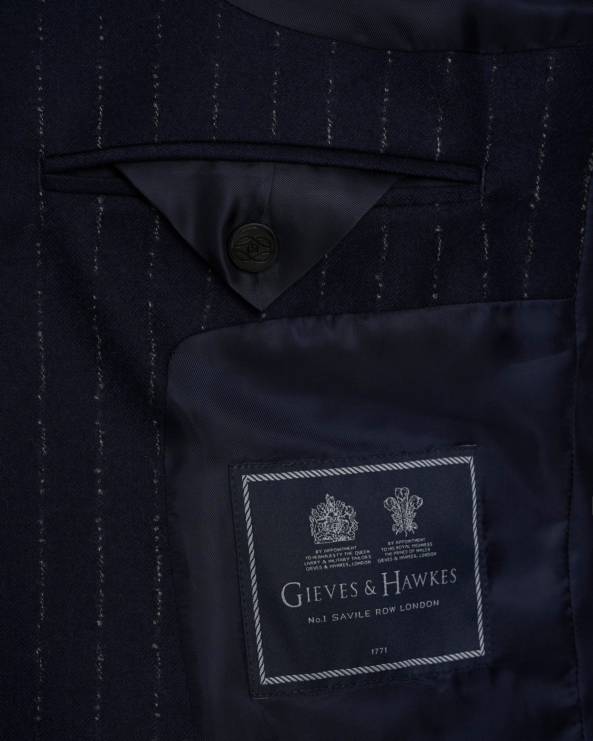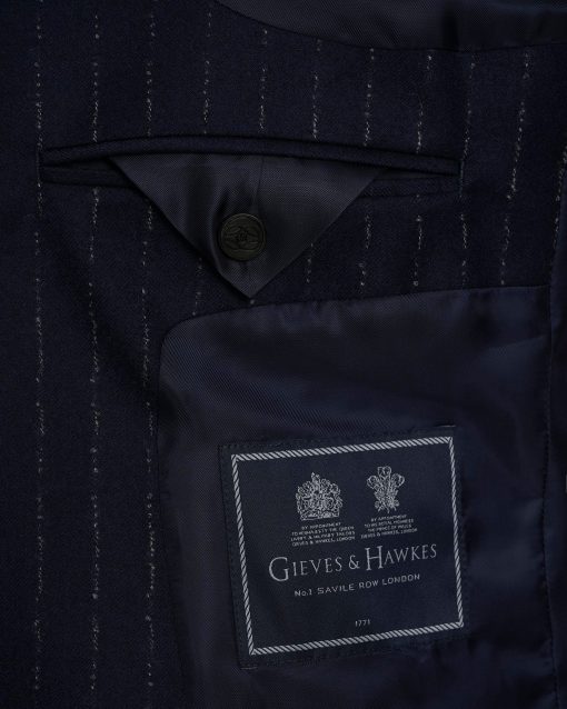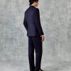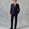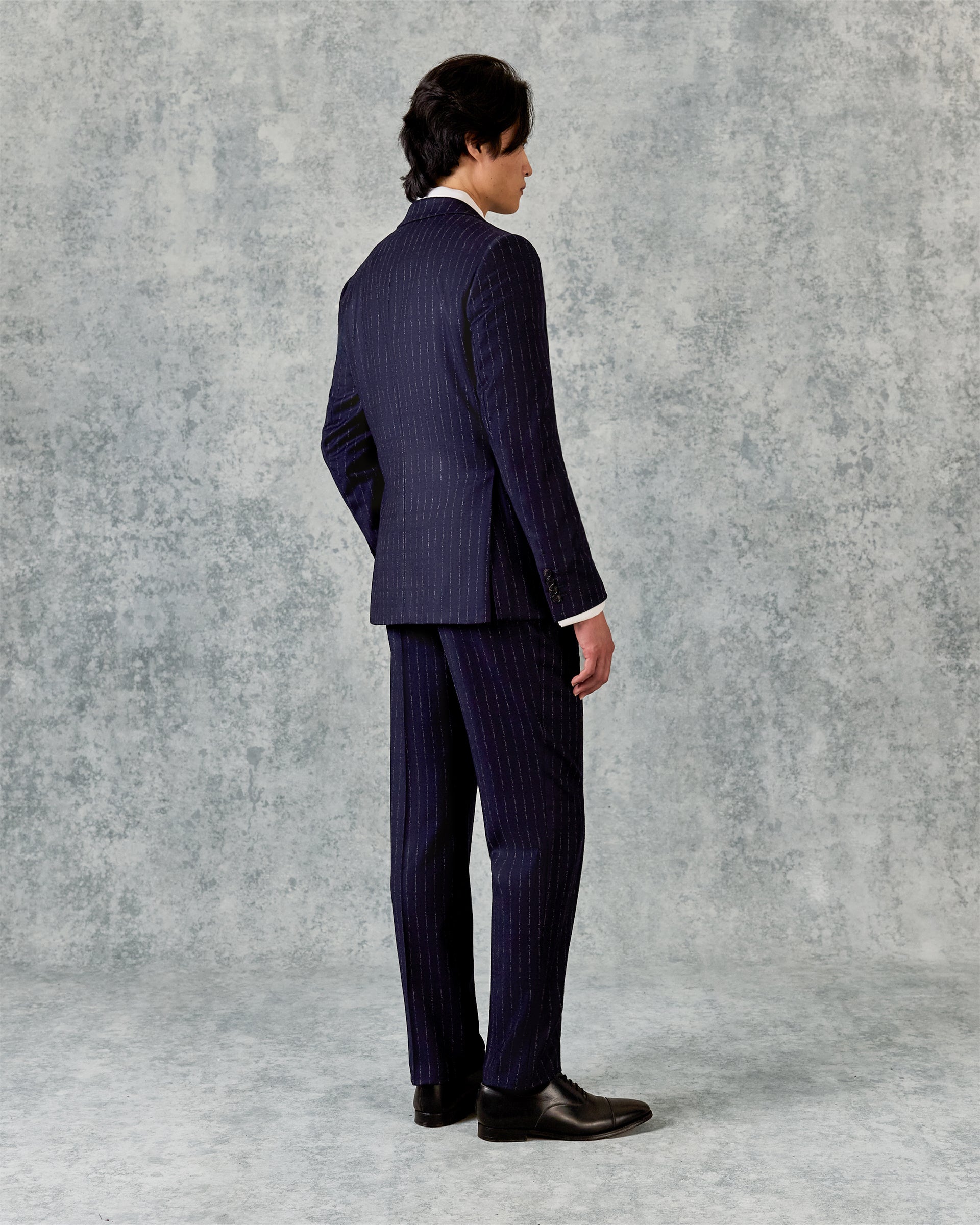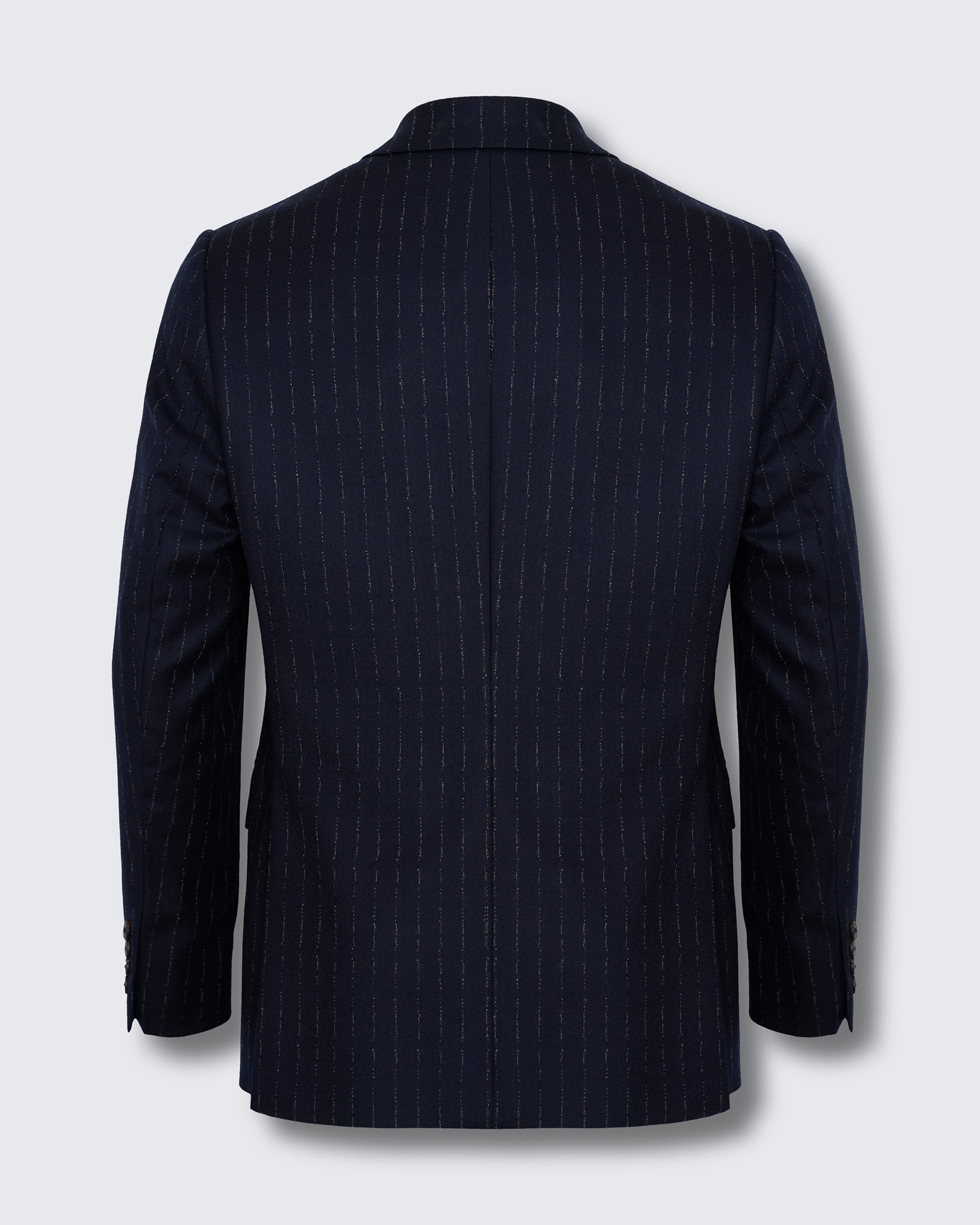 The Churchill Suit Jacket in Navy Morse Code Flannel is tailored from a refined Italian blend of wool and cashmere, offering a soft yet structured feel. With roped shoulders, flap pockets, and dark horn buttons, it’s a timeless piece that embodies classic sartorial elegance.