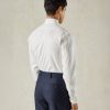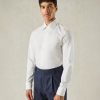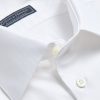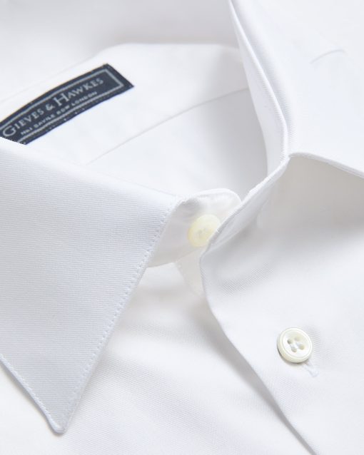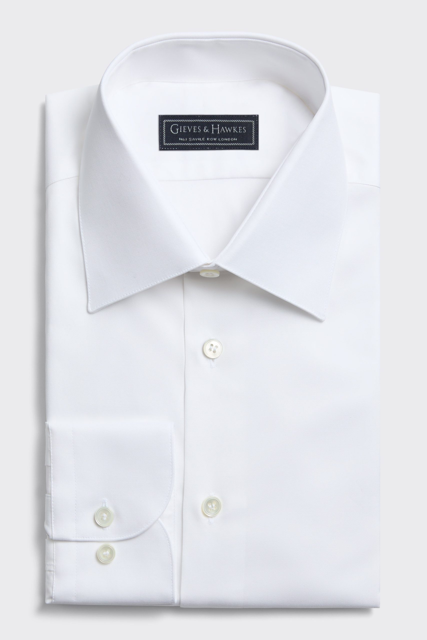 The Leveson Regular Collar, made with the finest fabric from the renowned Italian Albini mill, this white twill shirt features a point collar, single cuff, and a sleek French front. Its tailored fit ensures a distinguished silhouette, making it an essential addition to any gentleman’s wardrobe. Accentuating its luxurious appeal, the Leveson shirt is adorned with exquisite mother of pearl buttons. Designed for the modern professional, this formal plain model offers a seamless blend of style and sophistication. Elevate your attire with this impeccable piece, embodying the very essence of refinement.