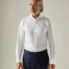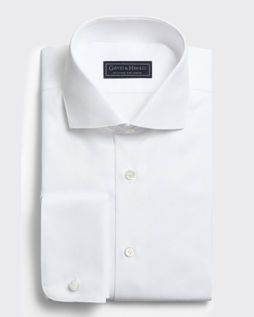 The Mawbey Cut Away Double Cuff Shirt in Herringbone crafted in the renowned Thomas Mason mill, this shirt features an exquisite spread collar, making it the ideal choice for discerning gentlemen. The tailored fit ensures a sleek, contemporary silhouette, while the French front adds a clean, refined finish.