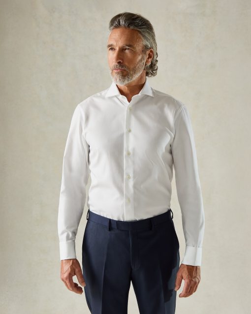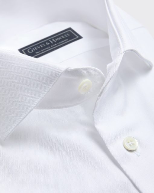 Designed with double cuffs and adorned with lustrous mother of pearl buttons, this formal herringbone shirt is an embodiment of superior craftsmanship and timeless style. Each detail speaks to a heritage of quality and sophistication, ensuring that you make a distinguished impression on any formal occasion.