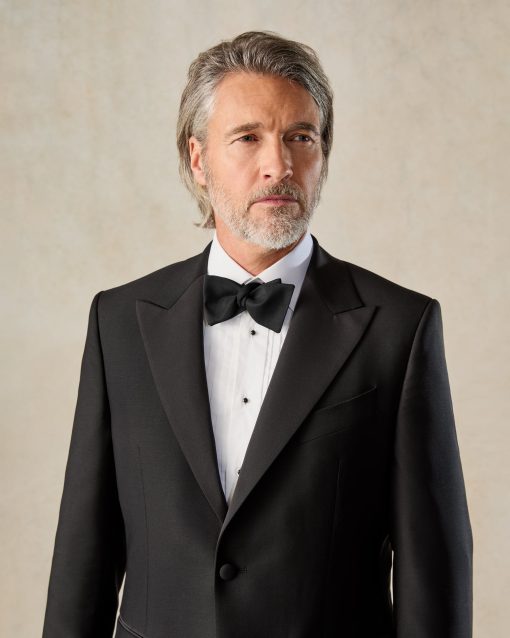 Gieves and Hawkes Men’s Shelford Wool Mohair Barathea Peak Lapel Dinner Suit Black