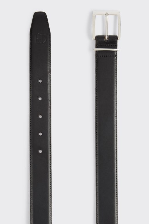 The Streeten Formal Belt by Gieves and Hawkes is the pinnacle of refined elegance and timeless craftsmanship, ideal for the discerning gentleman. Impeccably crafted from premium black leather, this belt features a feather edge and a sophisticated square silver buckle with a matching belt loop, exuding a sleek and polished aesthetic. The embossed branding on the inside serves as a subtle mark of quality and prestige, synonymous with the esteemed Gieves and Hawkes name.
