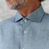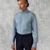 Elevate your wardrobe with the Swain Light Blue Spread Herringbone Shirt, impeccably woven and made in Italy for a sophisticated tailored fit. Featuring an Eton spread collar and smoked mother of pearl buttons, it blends classic elegance with modern finesse.